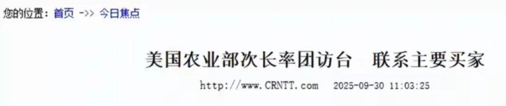 9月底,美国农业部贸易代表团密集走访台北,推动黄豆、小麦、玉米及牛肉四大品类合作。台农业部门负责人陈骏季同期赴美,火速敲定采购量增幅25%的长期订单。业内指出,台湾地区人均农产品消费规模有限,百亿美元协议远超实际需求,政治意图明显。