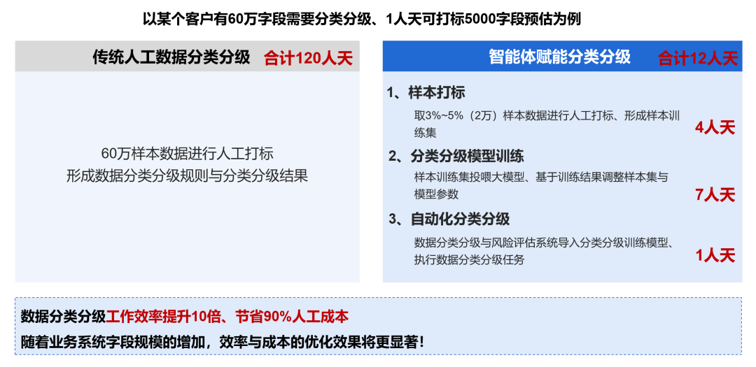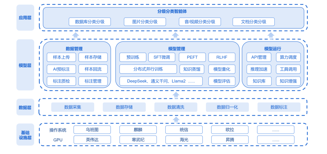 随着技术的持续演进和用户需求的深入挖掘,迪普科技数据分类分级产品也在不断迭代进步。从最初通过人工方式提取数据并形成Excel表格,再使用脚本进行处理,发展到应用正则表达式进行匹配。在前两代产品中,普遍存在人力投入重大、准确率较低,且仅能对数据库中的结构化数据进行分级的问题。近年来,人工智能大模型和智能体技术迅速发展,模型在多模态和语义理解方面表现尤为出色,因此催生了第三代分类分级产品。
